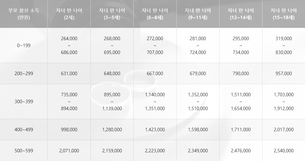 공식적인 양육비 산정표를 활용하면 적정 금액을 쉽게 계산할 수 있다. 소득 구간별로 자녀 1인당 필요한 최소 양육비가 설정되어 있으며, 이를 기준으로 부모의 부담 비율이 정해진다.